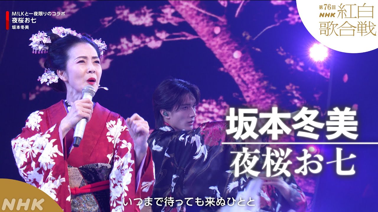 最後に、坂本冬美さんの「夜桜お七」について触れないわけにはいきません。1994年の大ヒットから30年以上経った今も、決して色褪せることのないこの楽曲を、今年は5人組ダンスボーカルグループ「M!LK」との異色コラボレーションで届けました。M!LKのメンバーたちは華やかな和装に身を包み、現代的なダンスの中に和の所作を織り交ぜながら、坂本さんの歌の世界を艶やかに彩ります。